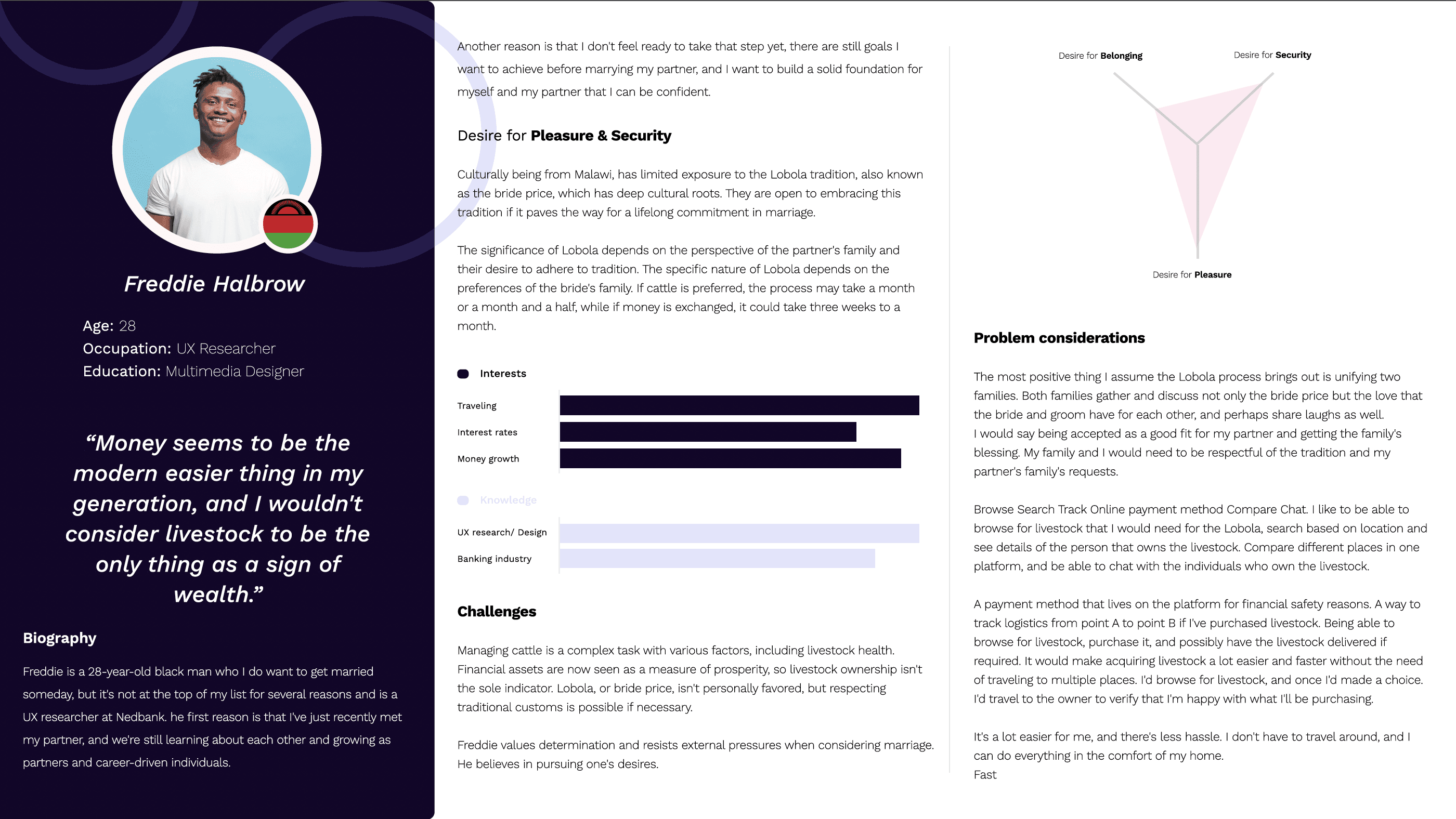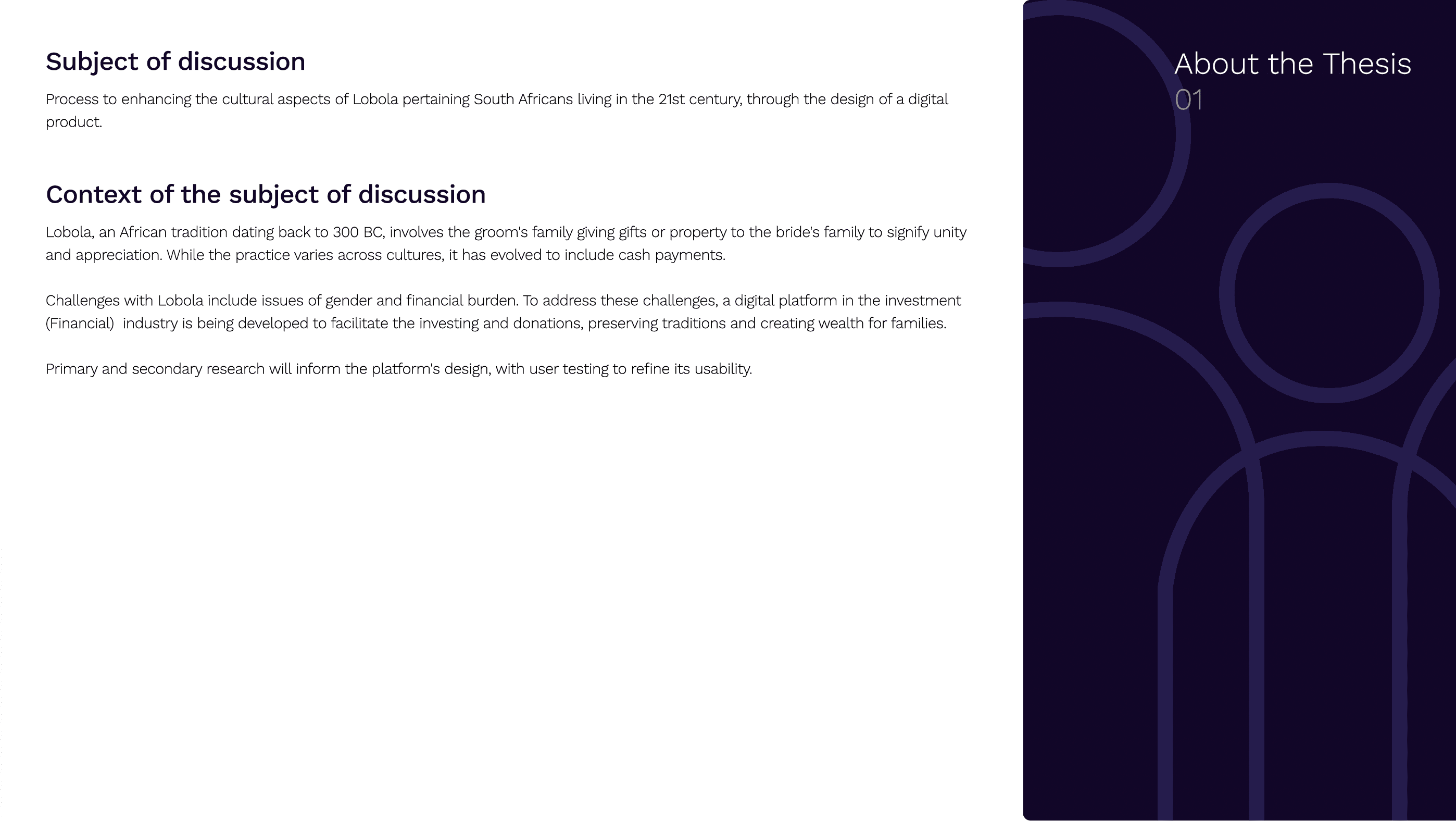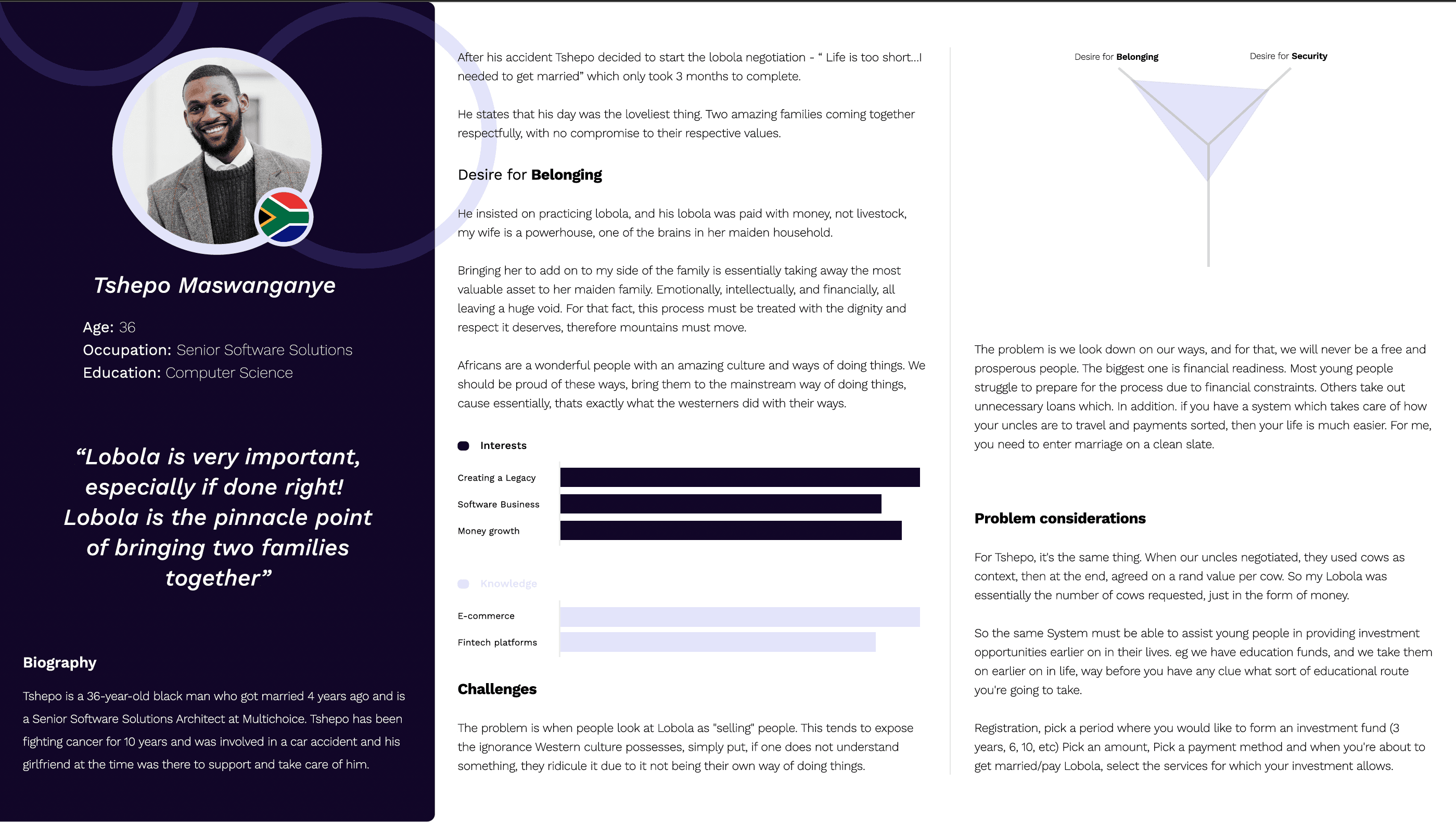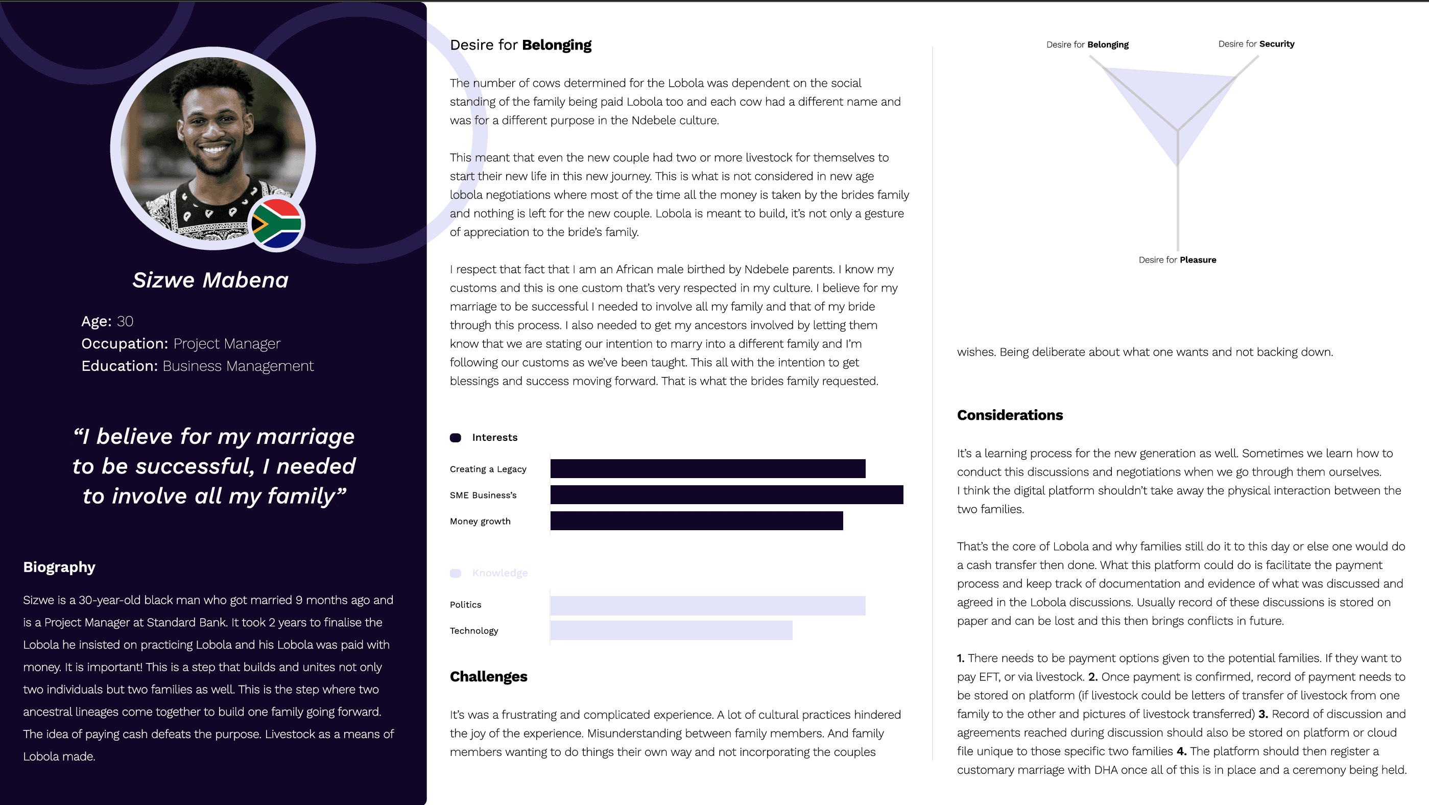 A research-driven design project reimagining Lobola as a financial empowerment tool for South African families. The project closest to my heart.