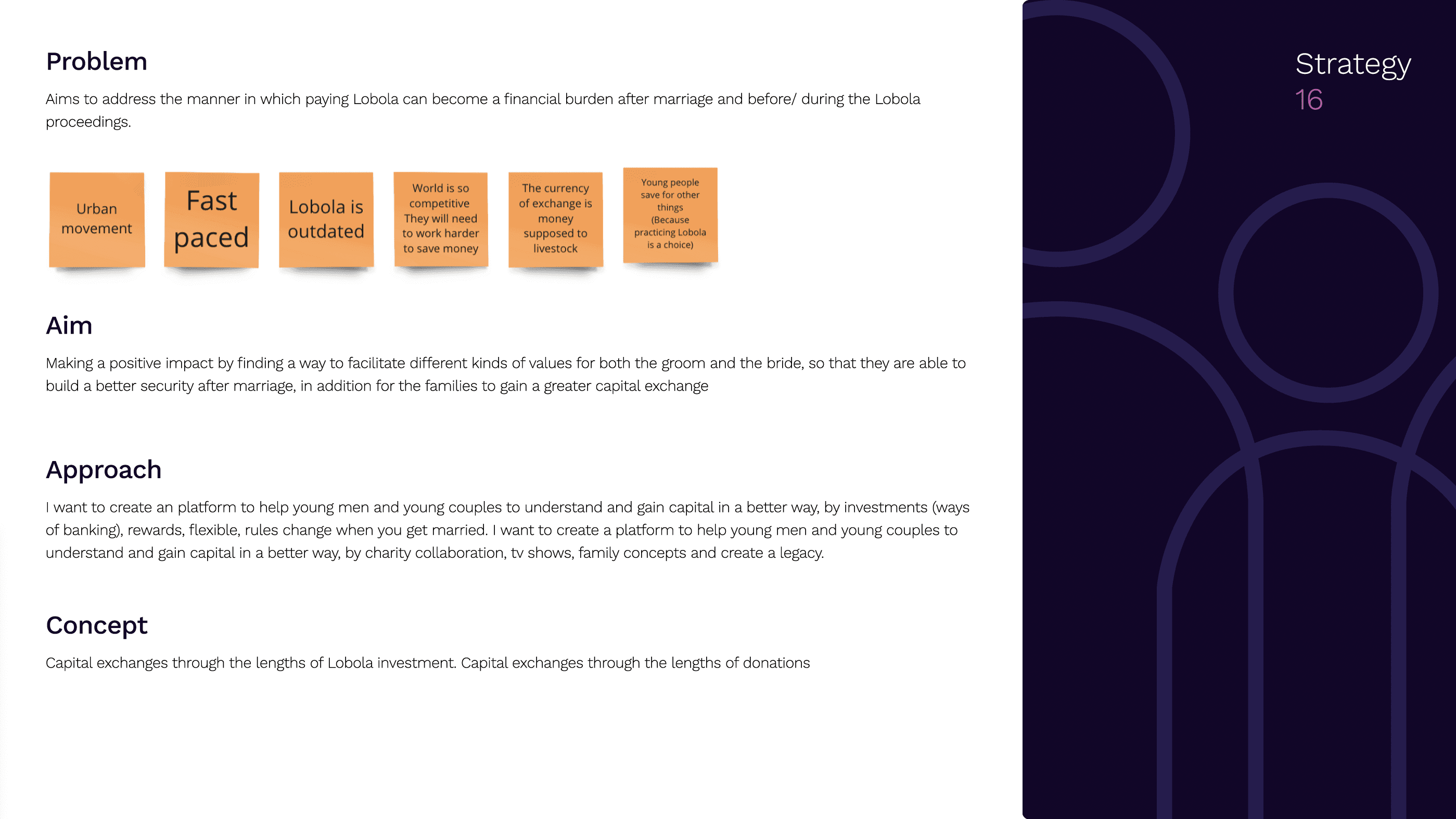 Traditional Lobola practices often place financial pressure on grooms, reinforcing economic inequality and gender disparity. Balancing the preservation of Lobola's cultural significance with the need to adapt it to contemporary economic realities was the core design tension. There was also a significant financial literacy gap limited access to tools and education about capital management for young couples at this critical life stage.